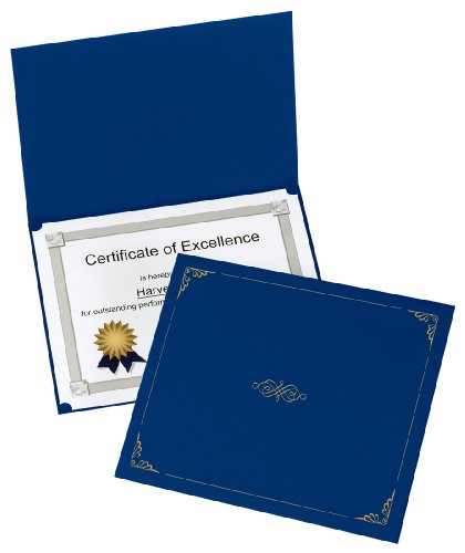 Gold accents distinguish this heavy linen stock certificate holder. Slots for vertical or horizontal presentation of certificate. Document Holder Type: Award; Certificate; Document; Global Product Type: Document Holders-Award;Document Holders-Certificate;Document Holders-Document. Oxford Certificate Holder, 80lb Linen Stock, 12.5 x 9.75 Inches, Dark Blue, Five per Pack (29900-235BGD)