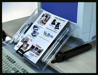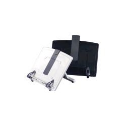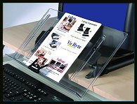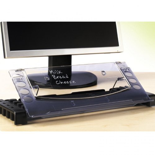 Patented design is ideal in either horizontal position to the monitor or in-line between monitor and keyboard. Great with keyboard shelves, flat panel monitor, CRT monitors and monitor arms. Does not change monitor height. Lightweight and mobile. Adjustable in height and angle. Document/book stand includes clip and line guide.