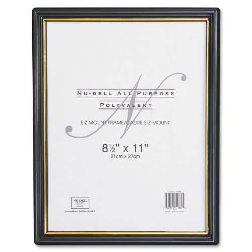 Frame features stylized gold accents, making it suitable for all your photographs, certificates or awards. With a protective plastic face that's unbreakable, you won't have to worry about the safety of your important awards. The frame mounts on wall. Nu-Dell 11818 EZ Mount Document Frames, Plastic, 8-1/2 x 11, Black, 18/Pack