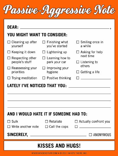 Avoid confrontation altogether! Makes life 87% less awkward! Knock Knock Nifty Note Pad, Passive-Aggressive Note (12087)