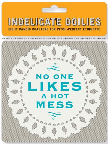 Call attention to your sense of humor while instilling proper etiquette in your guests with our sturdy and reusable drink coasters No matter the occasion, imbibing visitors are sure to marvel at your good taste and mind their manners. They also make for cool, funny gifts. Knock Knock 10056 Indelicate Doilies, Package of 8 Reusable Coasters, Hot Mess
