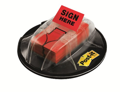 Lightweight dispenser grips to the desk without adhesive for convenient one-handed dispensing. Flags feature a bold arrow design pointing precisely to important information. All flags are removable and repositionable. Write on flags with ballpoint pen or pencil. Color(s): Red Message(s): SIGN HERE Dispenser: Pop-Up Assortment: N/A.Unit of Measure : Pack Post-it Message Flags, "Sign Here", Red, 1-Inch Wide, 200/Desk Grip Dispenser, 1-Dispenser/Pack